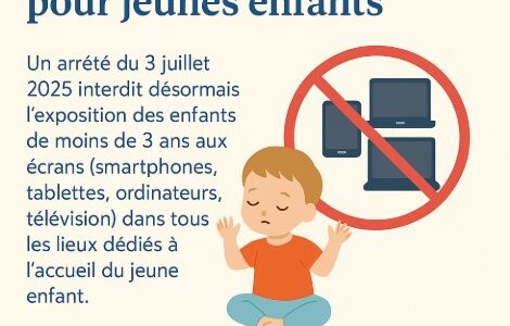 Un arrêté du 3 juillet 2025 interdit désormais l’exposition des enfants de moins de 3 ans aux écrans (smartphones, tablettes, ordinateurs, télévision) dans tous les lieux dédiés à l’accueil du jeune enfant : crèches, micro-crèches, haltes-garderies, assistants maternels, etc.